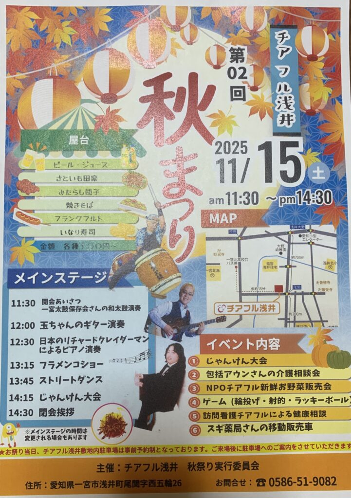 チアフル浅井秋祭りが、今週土曜に行われます。イベント内容やメインステージなどでワクワクするような演目がたくさんです😄