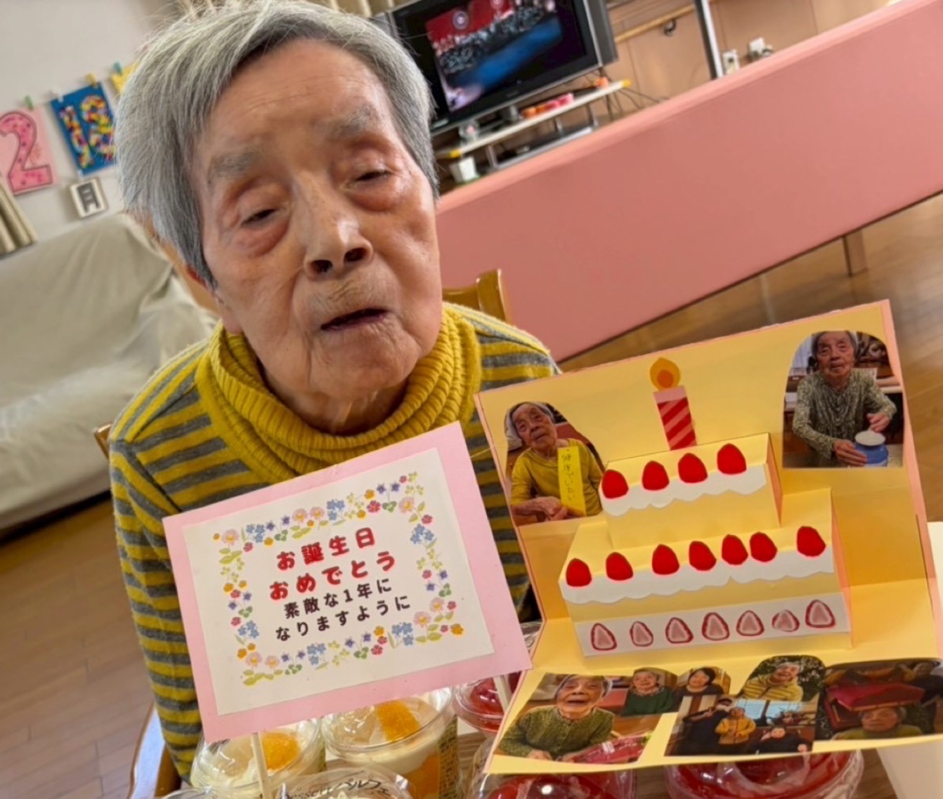 お誕生日おめでとうとのお祝いをたくさんもらいました。当日は、あまり笑顔が見られなかったのが残念ですが、、。