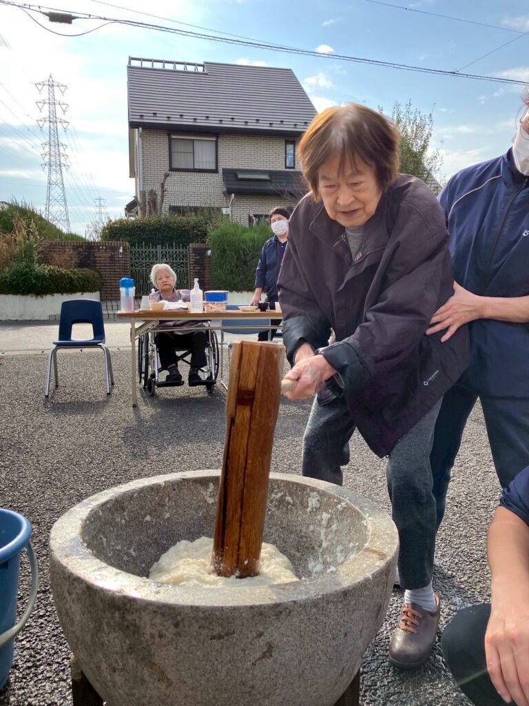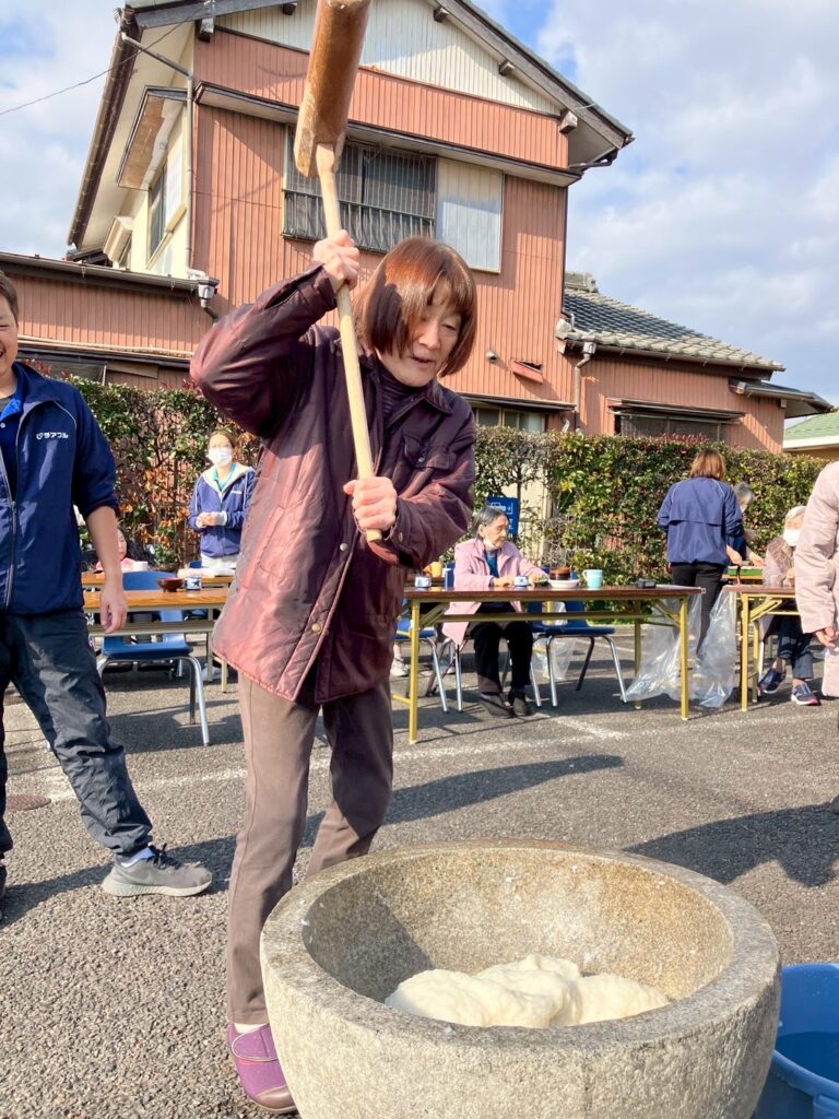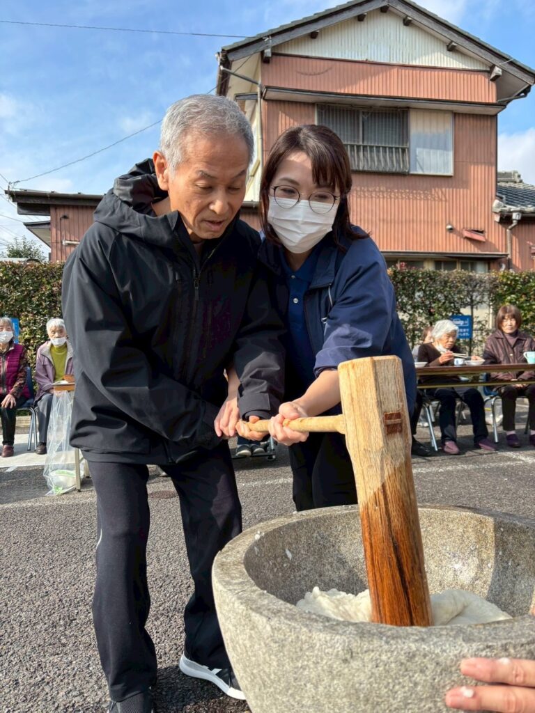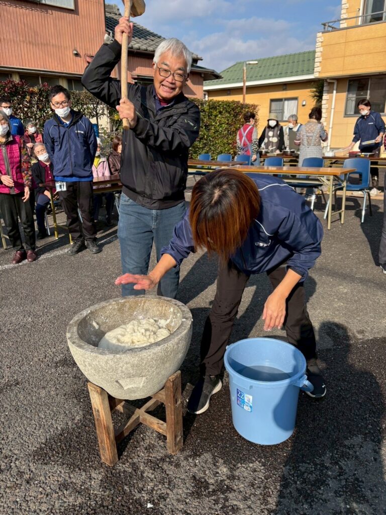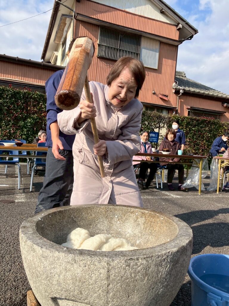 先週、運営推進会議として地域の皆さんと一緒にお餅つきを行いました。