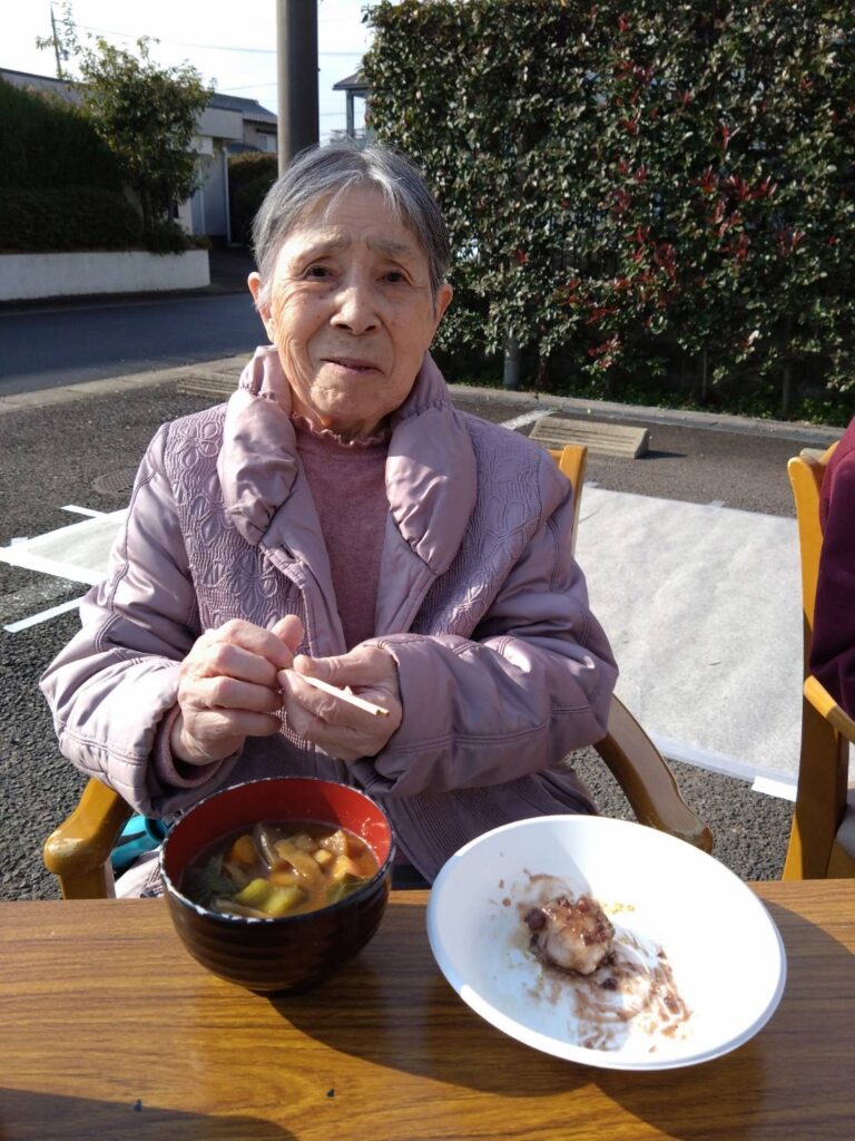 チアフル畑のお野菜たっぷり豚汁、お漬物と外でゆっくりお食事もしました。