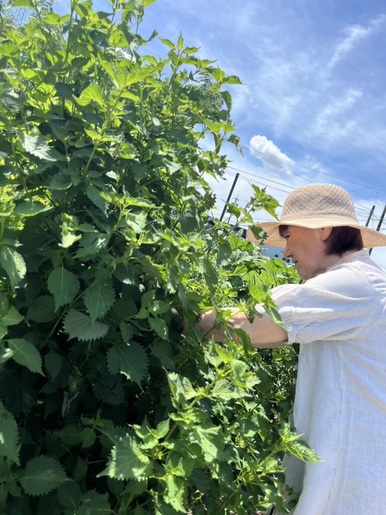 晴れ間にお散歩や畑から大葉の収穫も🤚