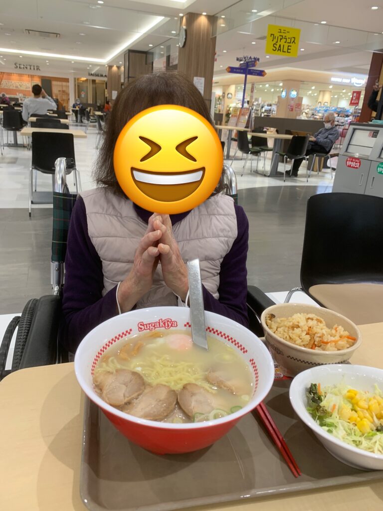普段の買い物でスガキヤの割引券が付いて購入。「またスガキヤ食べたいから、これ買おう」と選んでくれた利用者様と一緒に出かけました。ラーメンを食べたら、なんとソフトクリームが無料なんです🎶