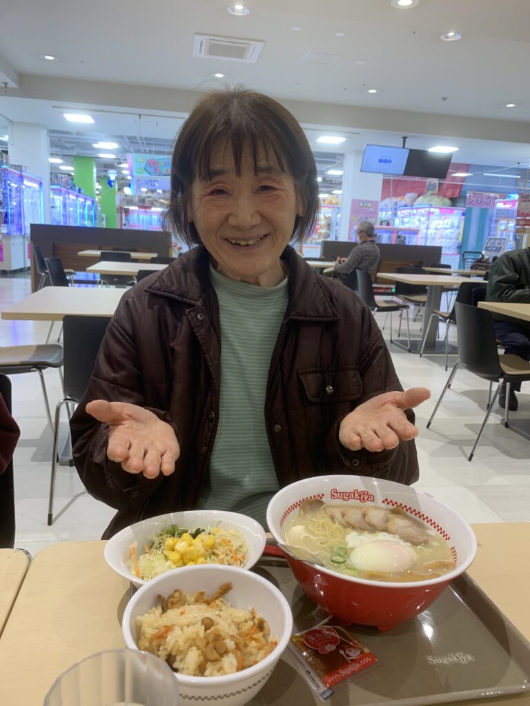 普段の買い物でスガキヤの割引券が付いて購入。「またスガキヤ食べたいから、これ買おう」と選んでくれた利用者様と一緒に出かけました。ラーメンを食べたら、なんとソフトクリームが無料なんです🎶