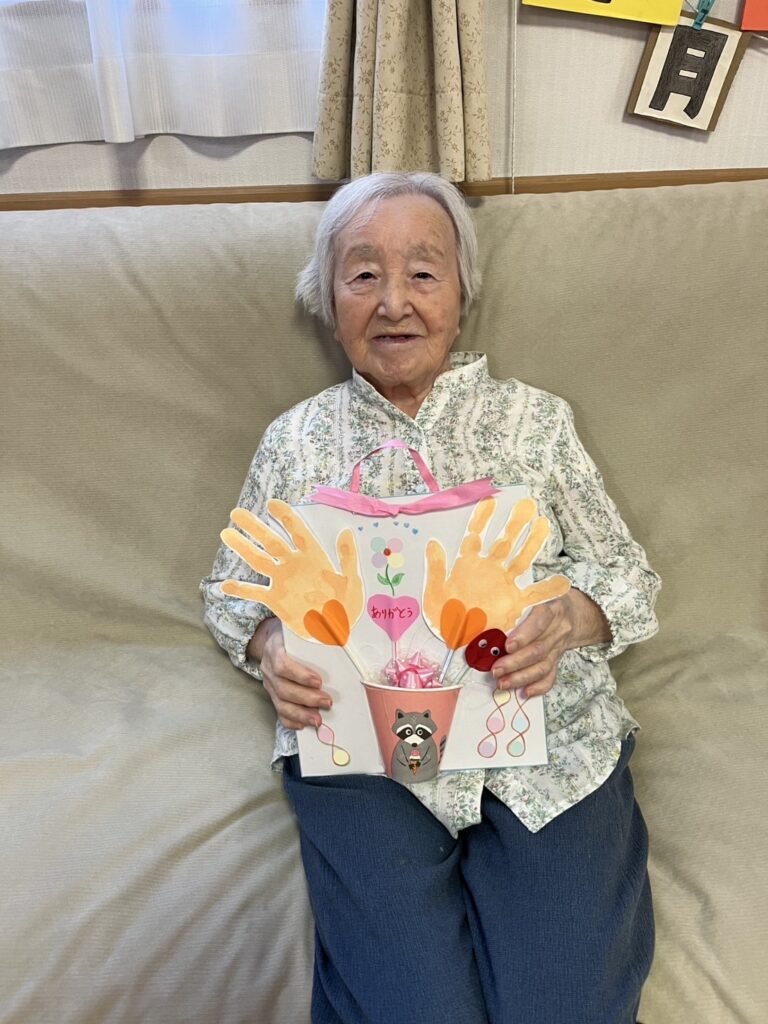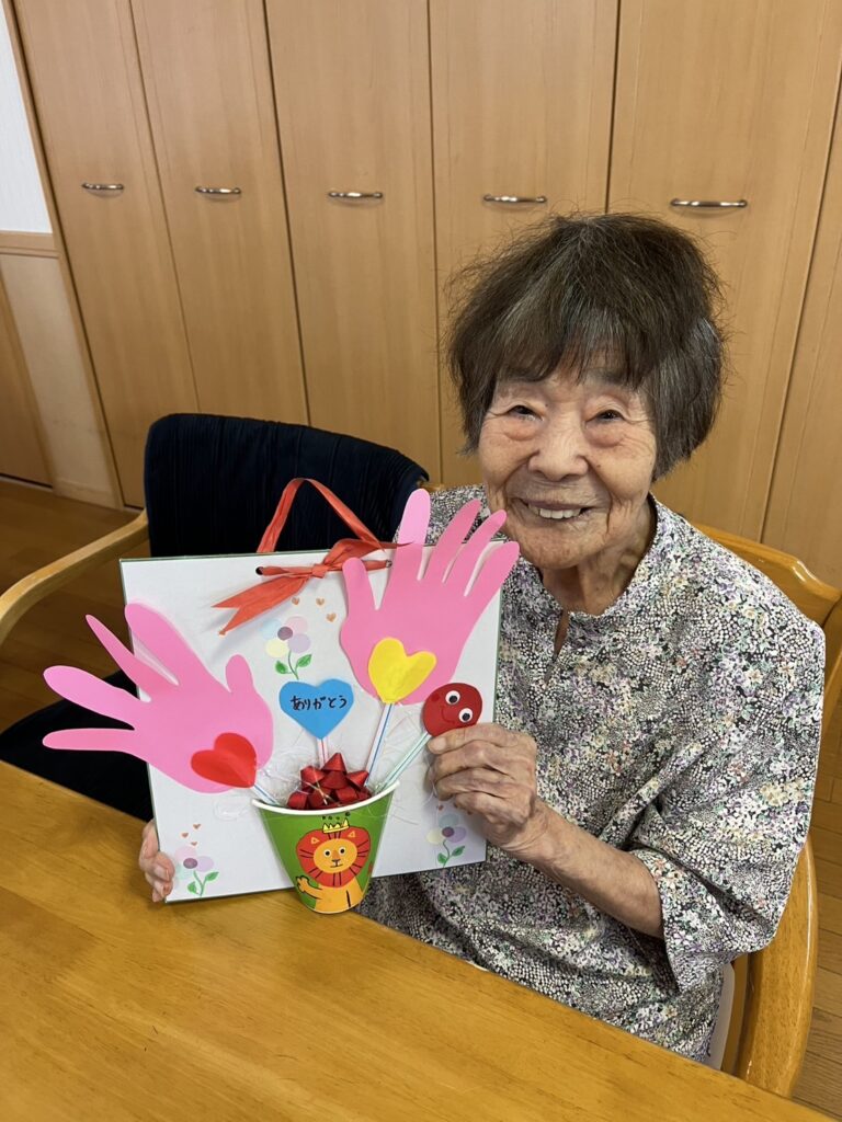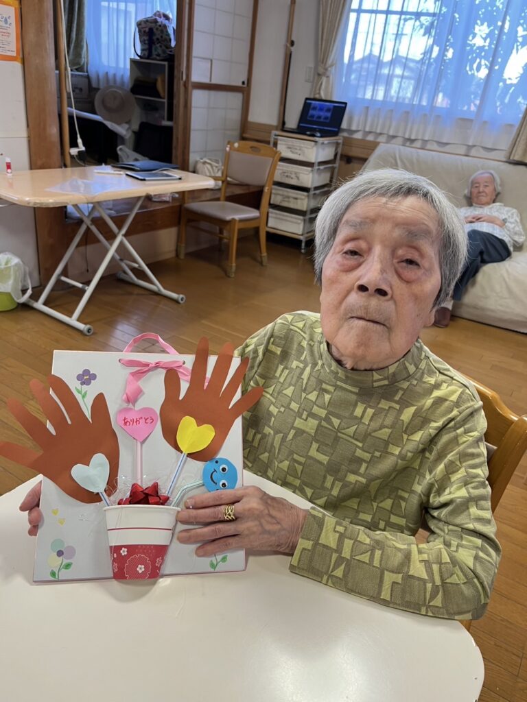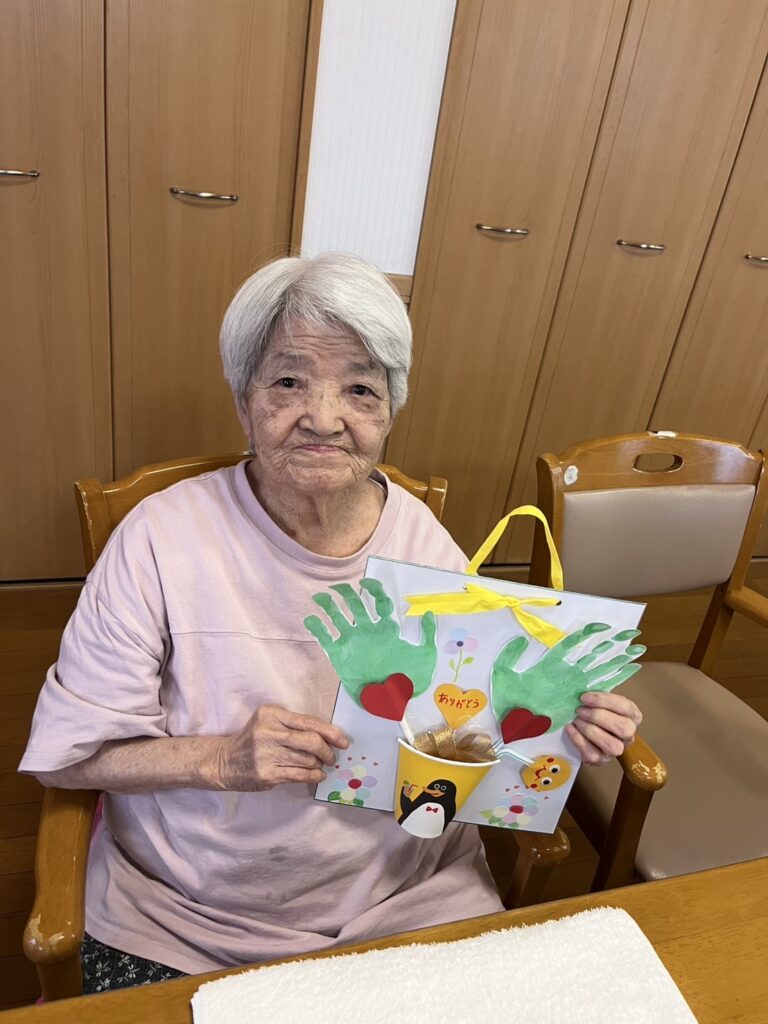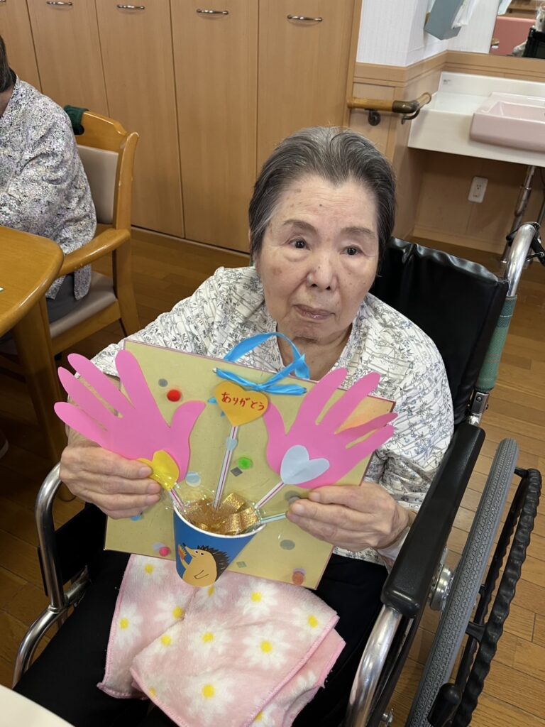 敬老の日は、みなさんの手形で作った色紙をプレゼント🎁です。カラフルで可愛いと好評でした。