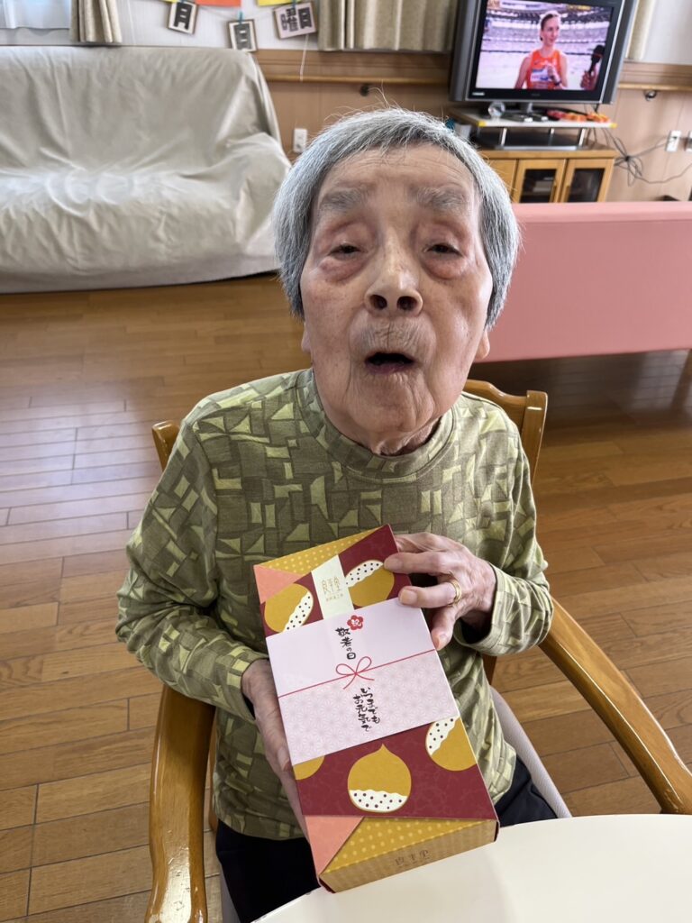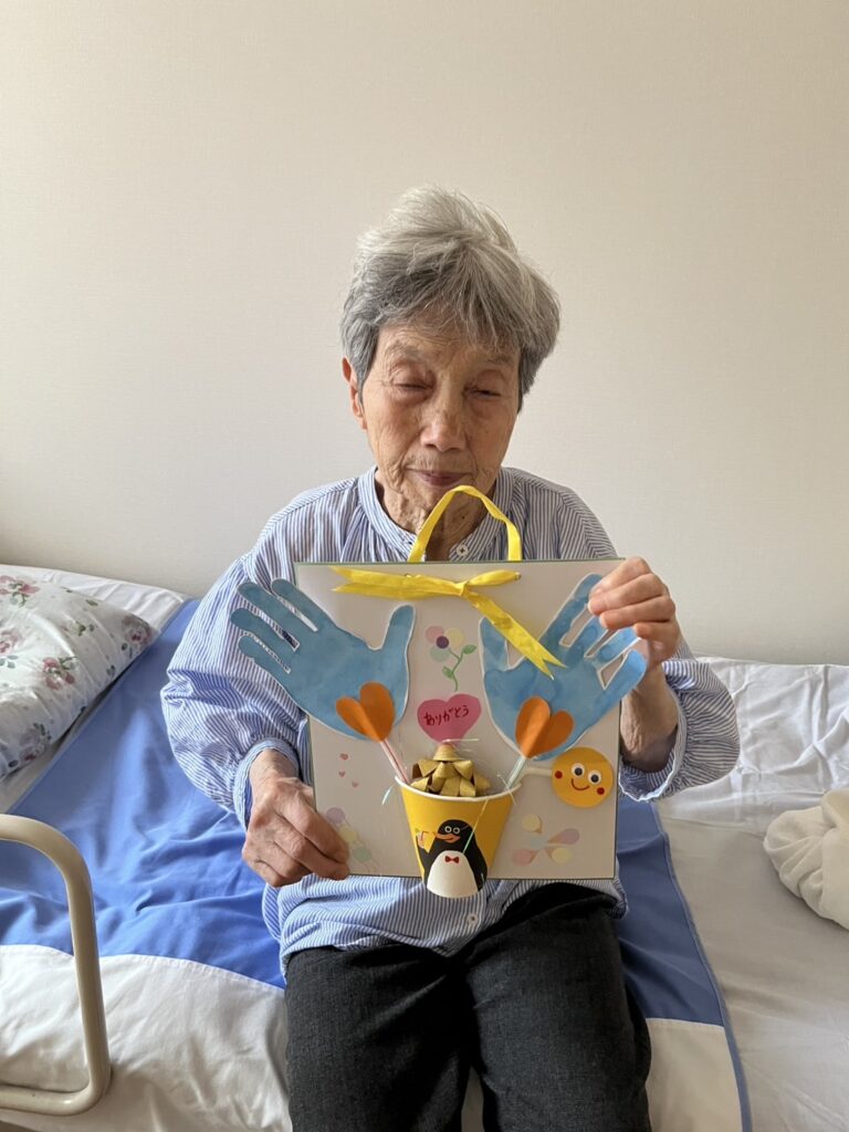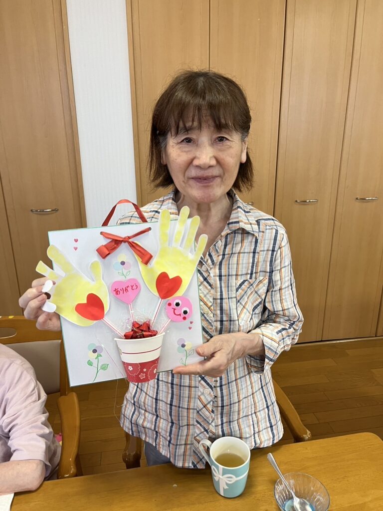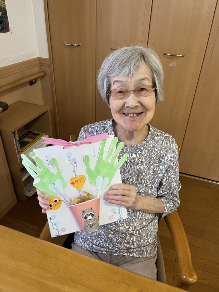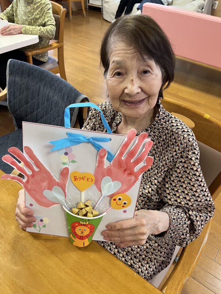 敬老の日は、みなさんの手形で作った色紙をプレゼント🎁です。カラフルで可愛いと好評でした。