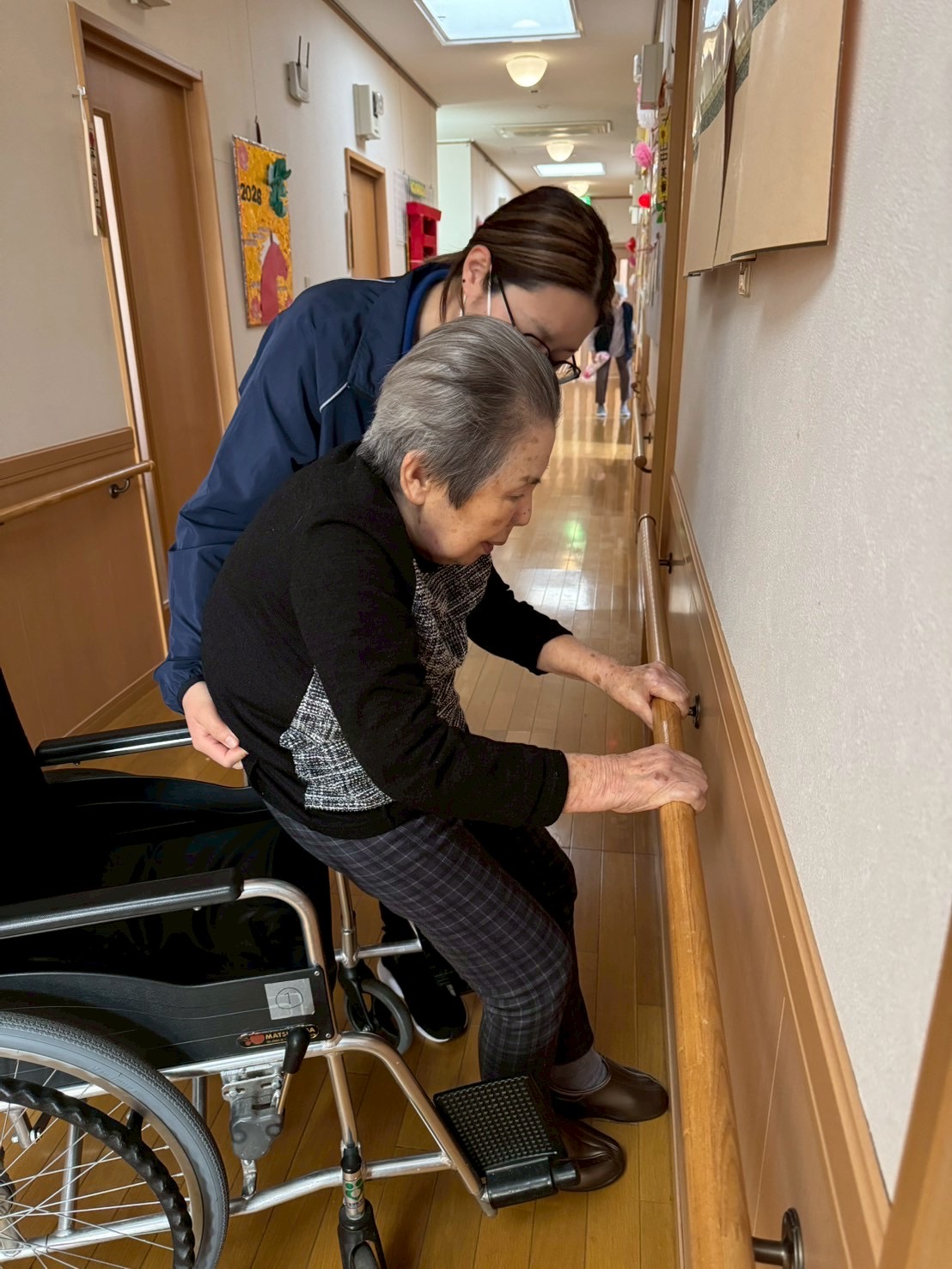 声かけしながら、少しずつ筋力アップ⤴️を目指していきます。ご本人への声掛けも工夫しながら、運動を毎日していきましょう。