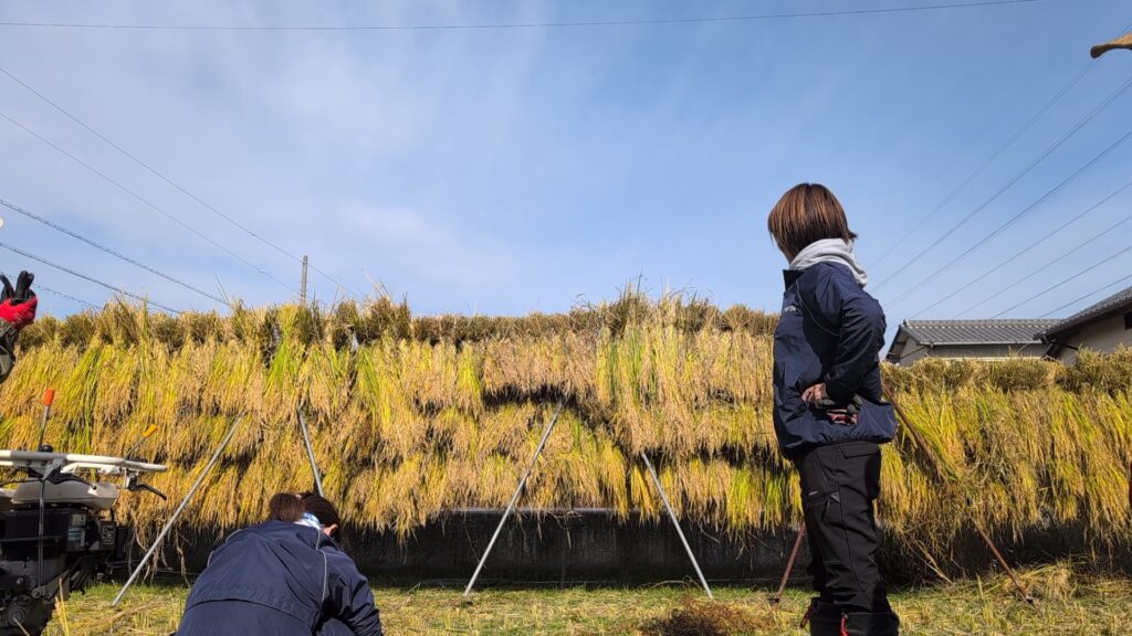 地域の方の声掛けで、もち米の稲架掛けを行いました💪