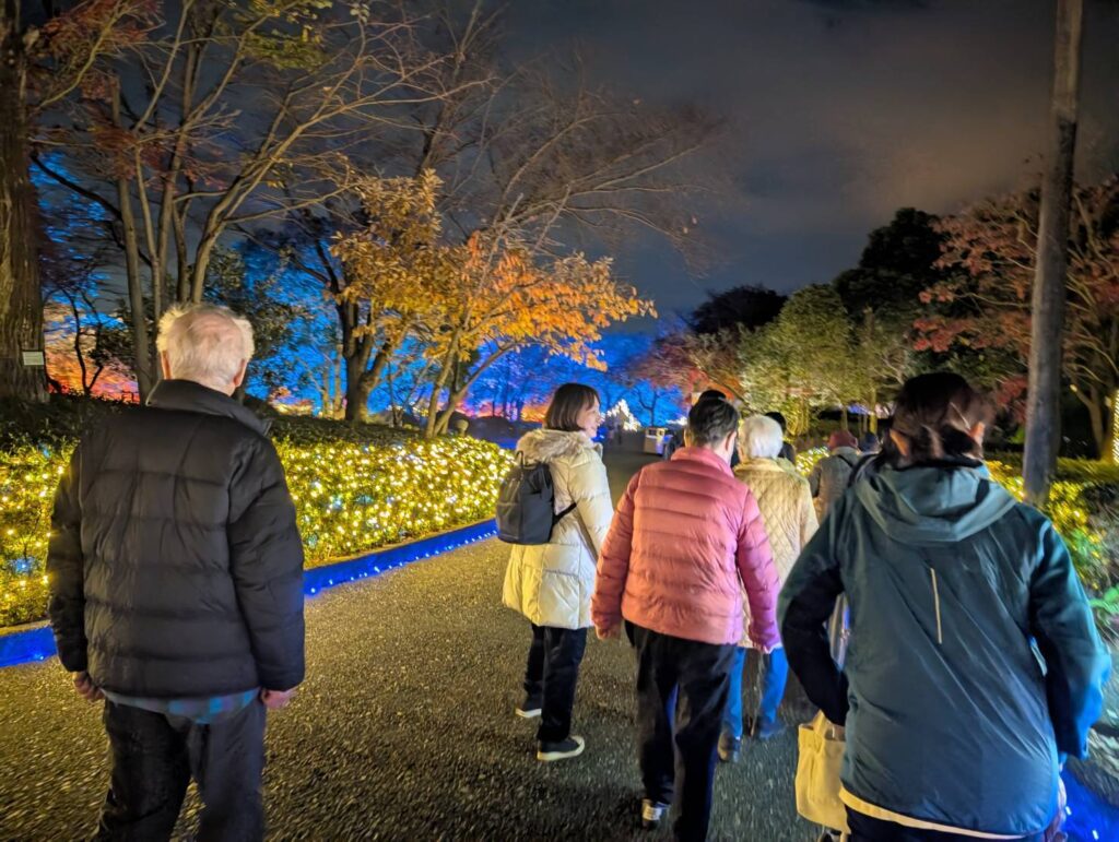 ベンチで時折休憩しながら、夕食全員で入れるお店を模索