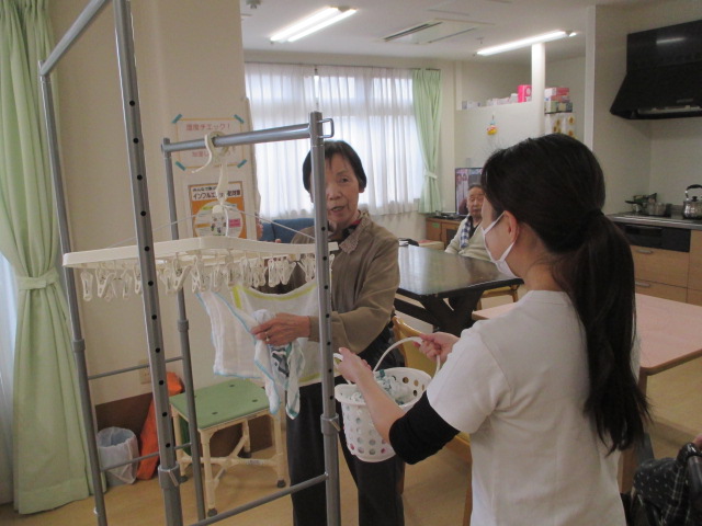 協力して洗濯干し💪