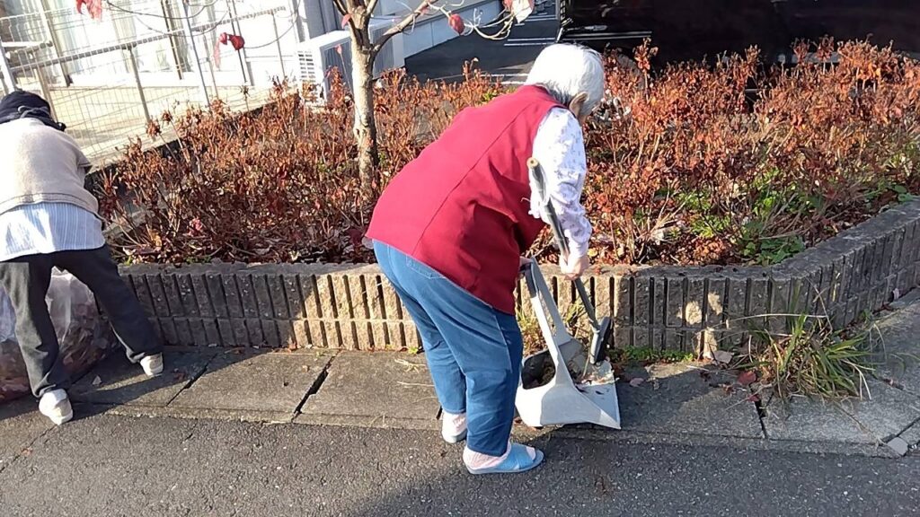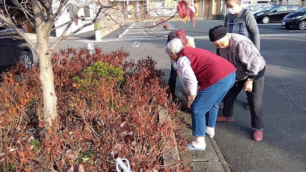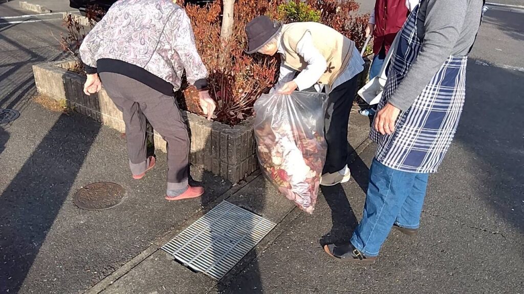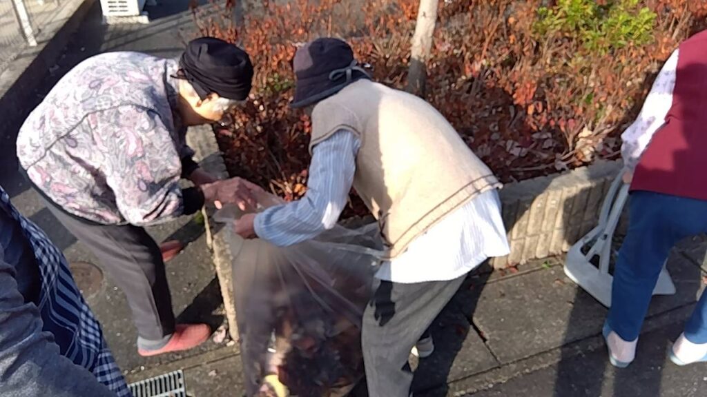 腰を曲げてオバ様方が作業中