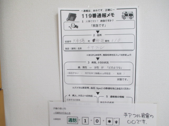 以前避難訓練で消防署の方に頂いた紙を利用しています。