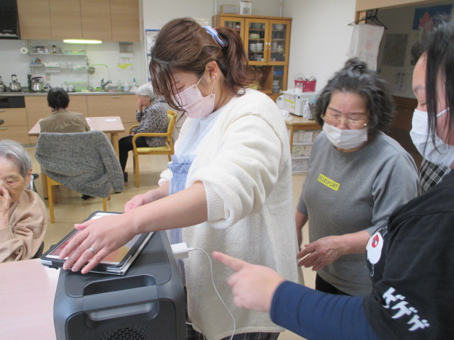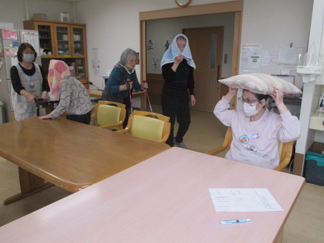 災害時、机も椅子も無いかもしれませんが、いろんな想定で訓練をしていきます。