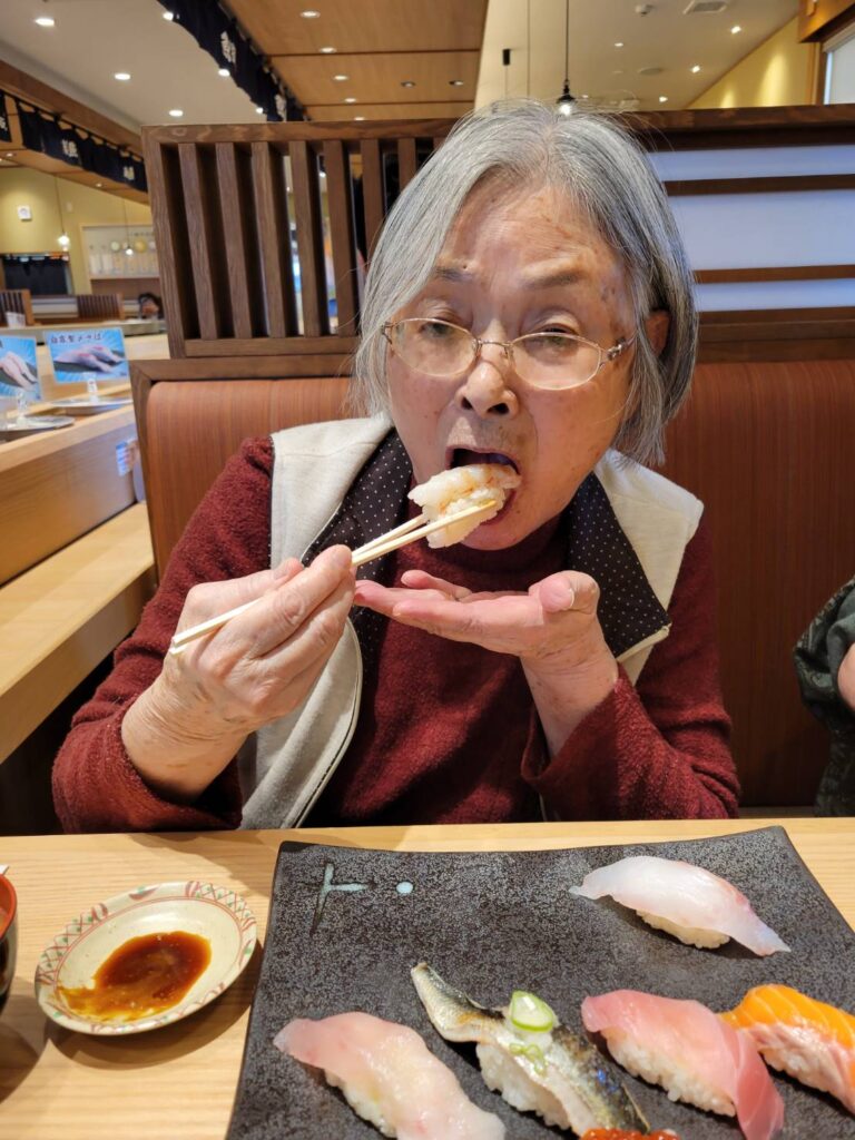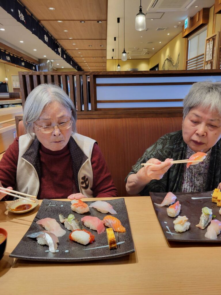 何が食べたい?「生寿司!!」ということで、主役さんは同じテーブルの方と外食へ🥢
