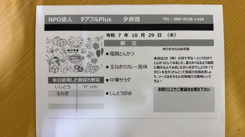 10/31夕食は、NPO法人Cheerful.plusのお弁当です。