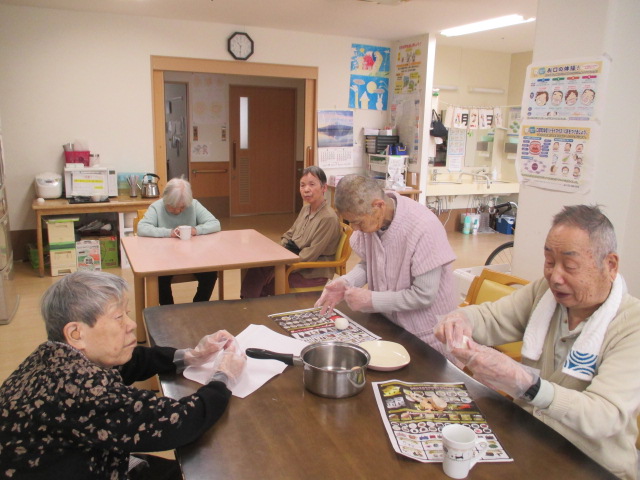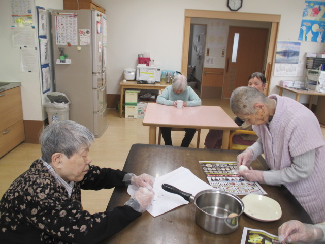 協力して、ゆで卵むき👏