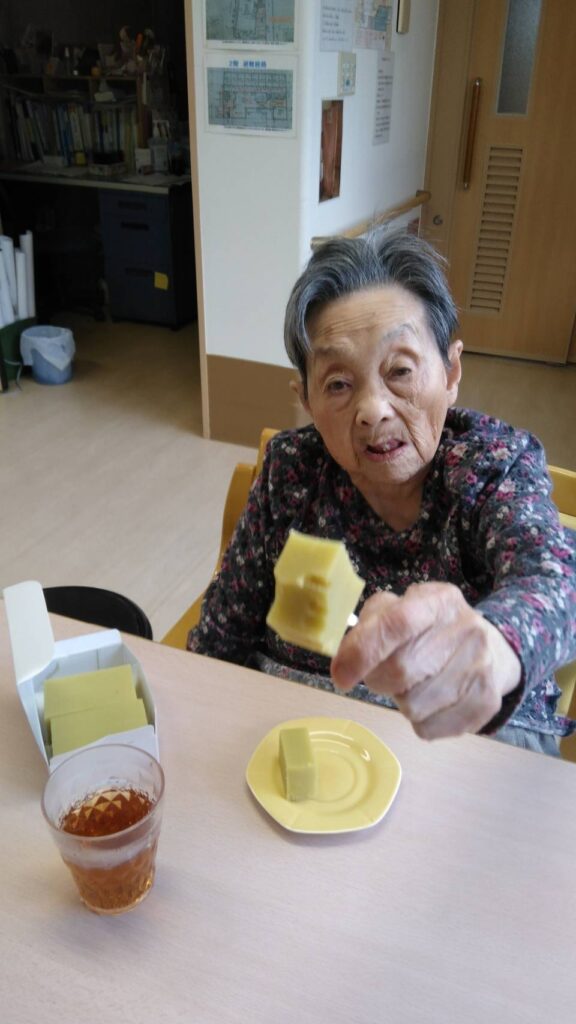 お正月に、家族様が持ってきてくださった、大好きな「からいも」(芋羊羹)