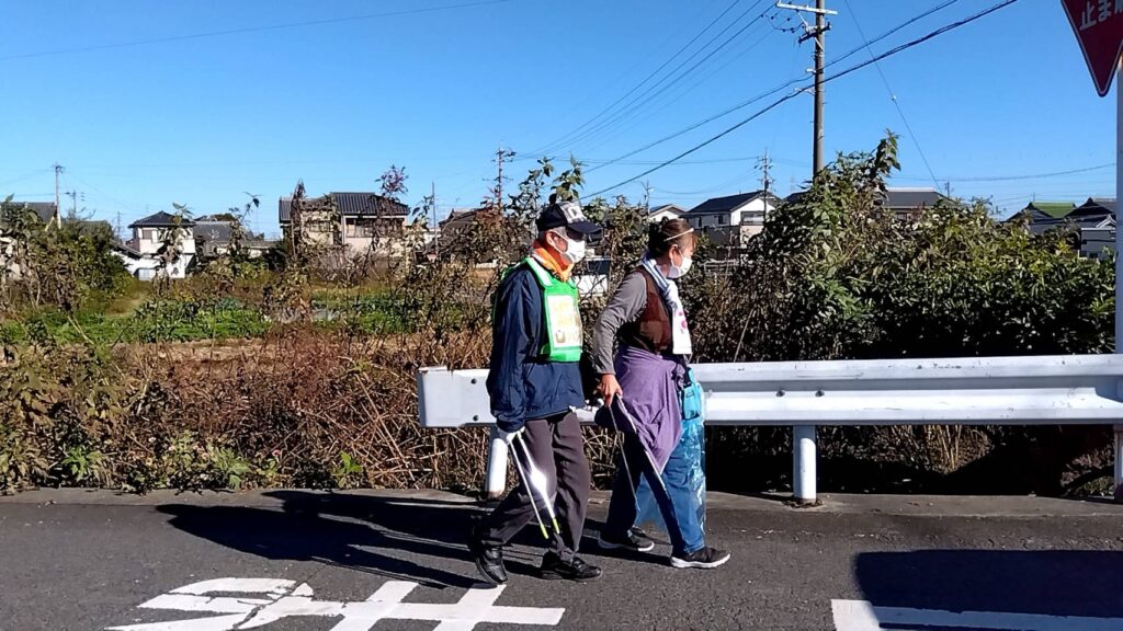雲一つない青空の元、ゴミ拾い60分!! 「ぜんぜん落ちてないねぇ~きれいな街だねぇ」と話しながらテクテク