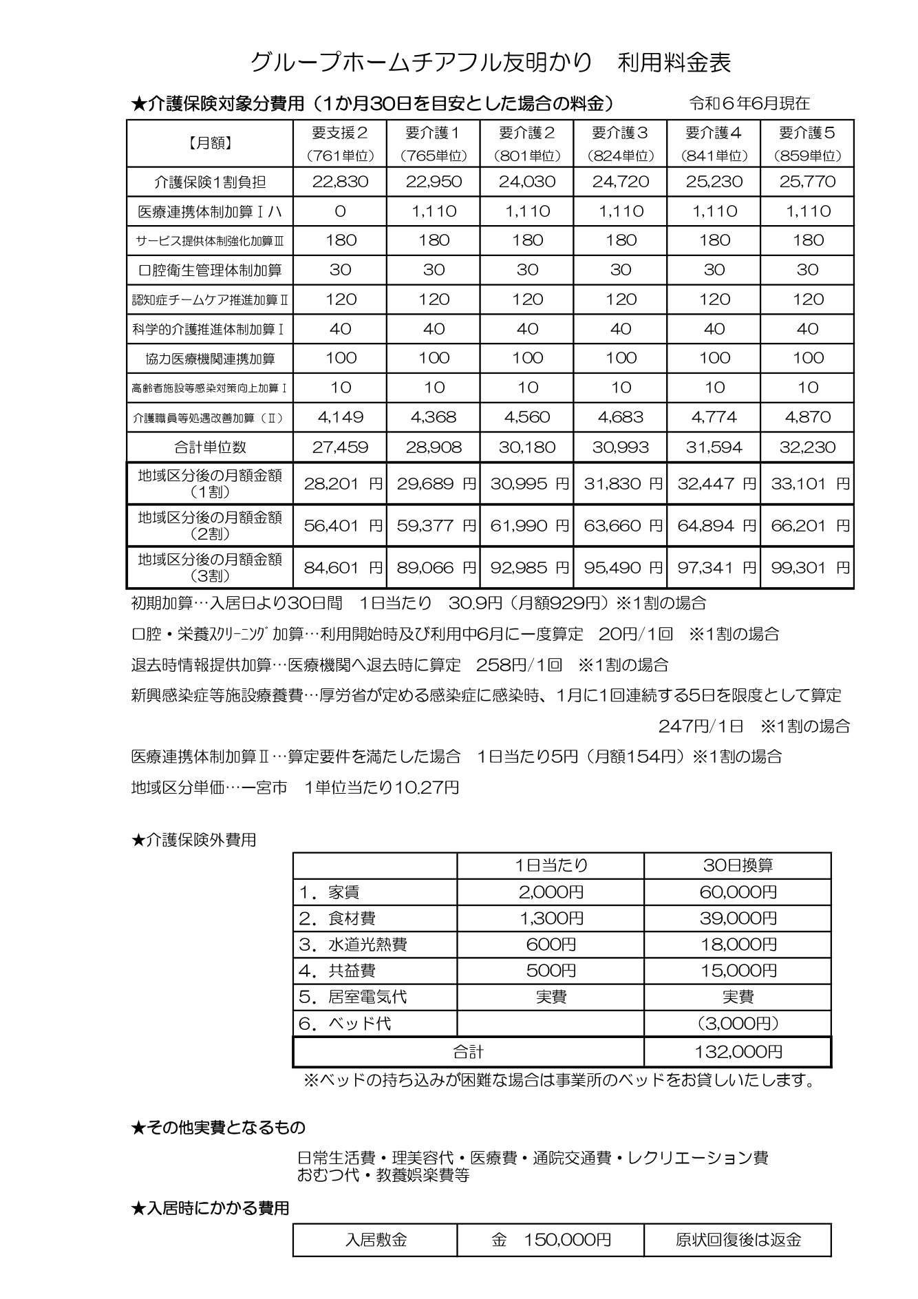 | 居室電気代 | 実費 | ベッド代 | 3,000円 |