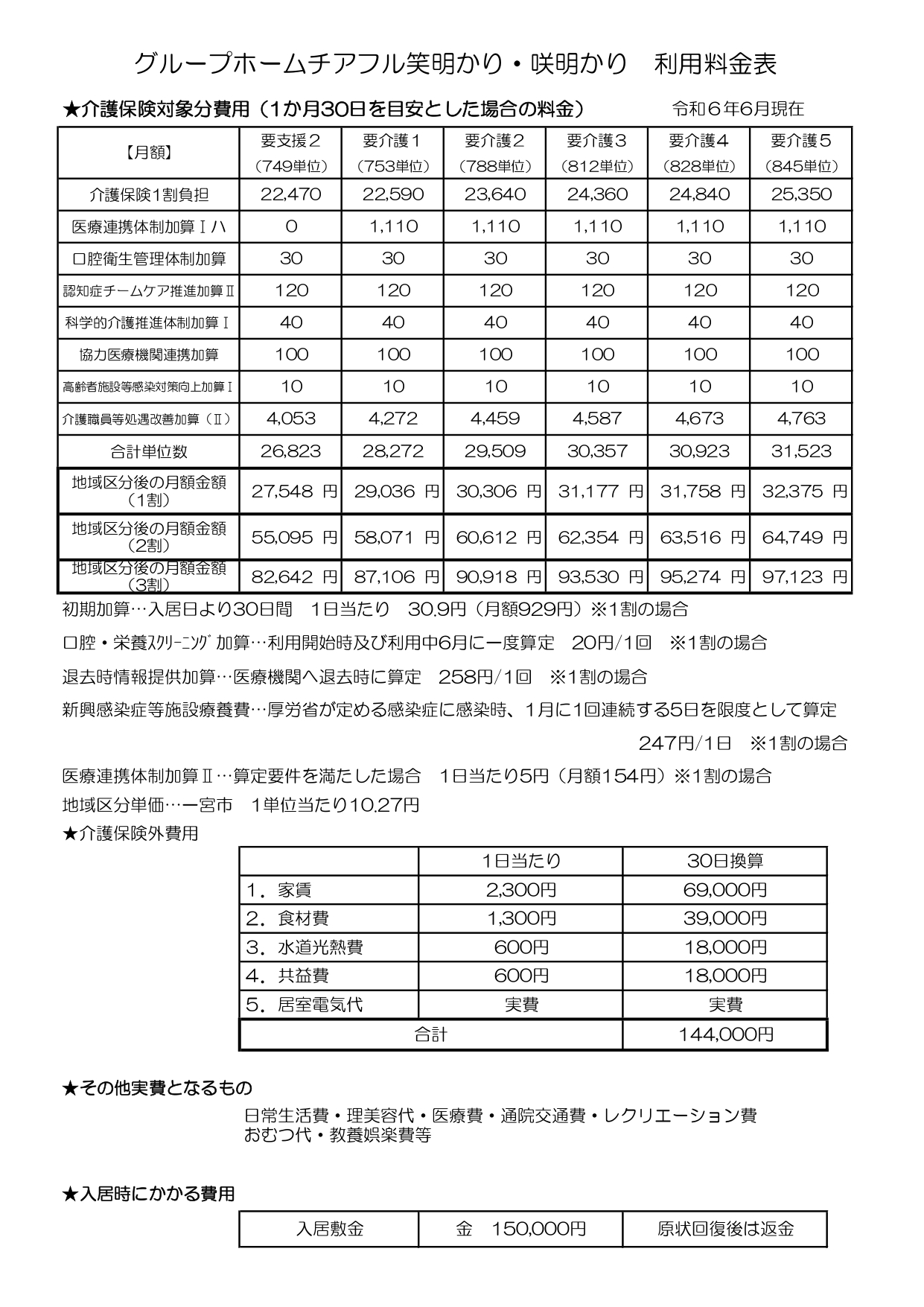 | 居室電気代 | 実費 | ベッド代 | 3,000円 |
